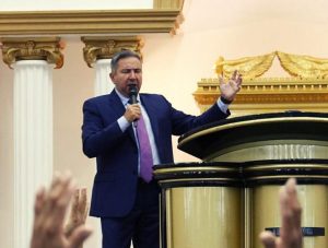 Durante uno de sus programas, el obispo del Centro de